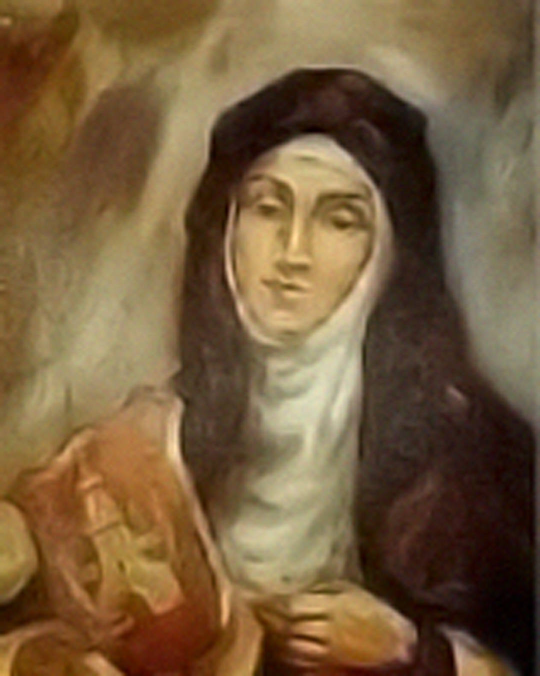 The youngest of seven children, Anne was born into a devout family of landowning farmers in the Castile region of Spain. From an early age, Anne had a deep love for Jesus and desired to become a nun. She experienced a number of dreams in which she realized she was being directed toward a recently-founded Discalced Carmelite monastery in Ávila. Anne entered Saint Joseph’s monastery in Ávila in 1570, becoming the first lay sister. After her profession, Anne joined Saint Teresa on her travels to Valladolid and Medina del Campo. Teresa thought very highly of Anne, and she proved invaluable to Teresa as her secretary and nurse. In the last years of her life, no longer able to write herself, Teresa would dictate her correspondence to Anne. Anne was an especially dedicated nurse, attending to Teresa’s health problems during her final years. Teresa died in Anne’s arms in 1582 at the convent in Alba de Tormes.